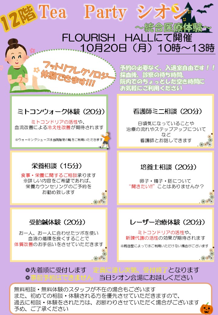10/20(月)Tea Party シオン~統合医療体験会~のお知らせ