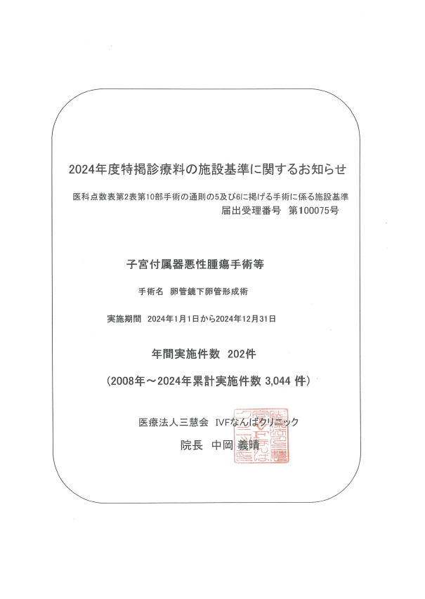 医療点数表第2章第10部手術の通則の5及び6に掲げる手術に係る施設基準による当院実施件数となります。