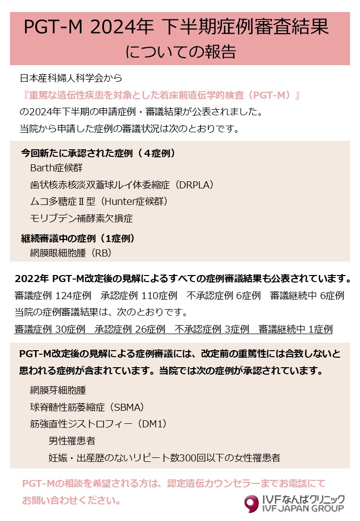 PGT-M 2024年 下半期症例審査結果公表について