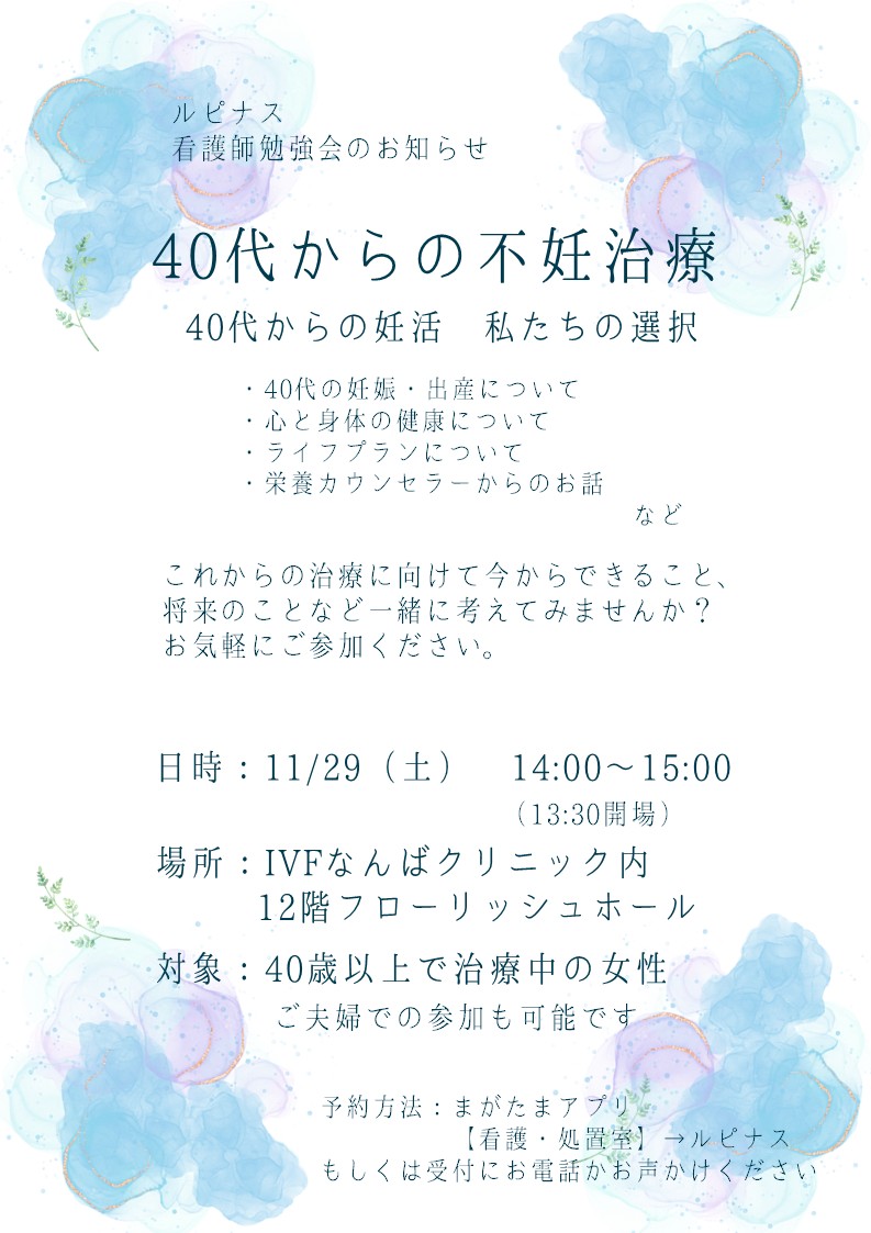 11月29日(土曜日)に40代で治療中の女性を対象とした勉強会を開催します。