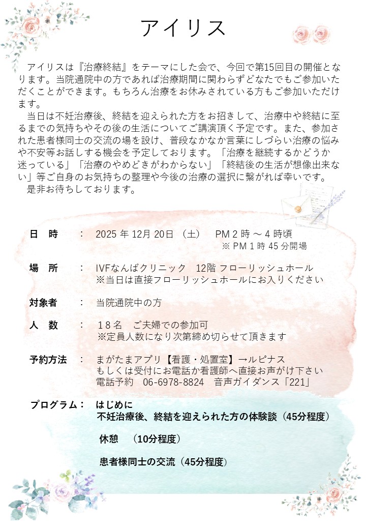 【12/20(土)】治療終結の会アイリスを開催します