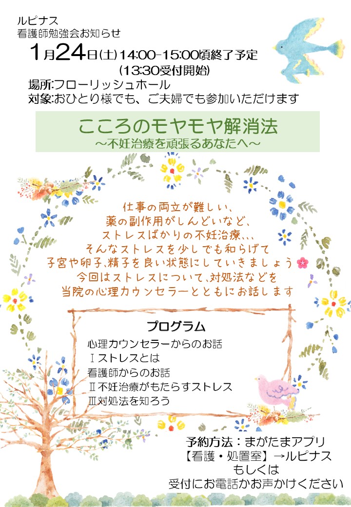 「こころのモヤモヤ解消法~不妊治療を頑張るあなたへ~」をテーマにした患者会を開催いたしました。