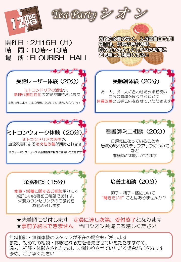 【2/16(月)】〖当院の患者様以外でも参加OK!!〗Tea Party シオン開催のお知らせ