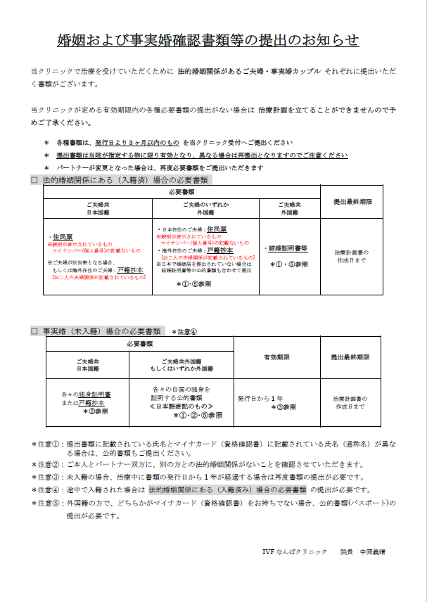 4月1日より法的婚姻関係にある(入籍済)場合の必要書類を変更させていただきます。