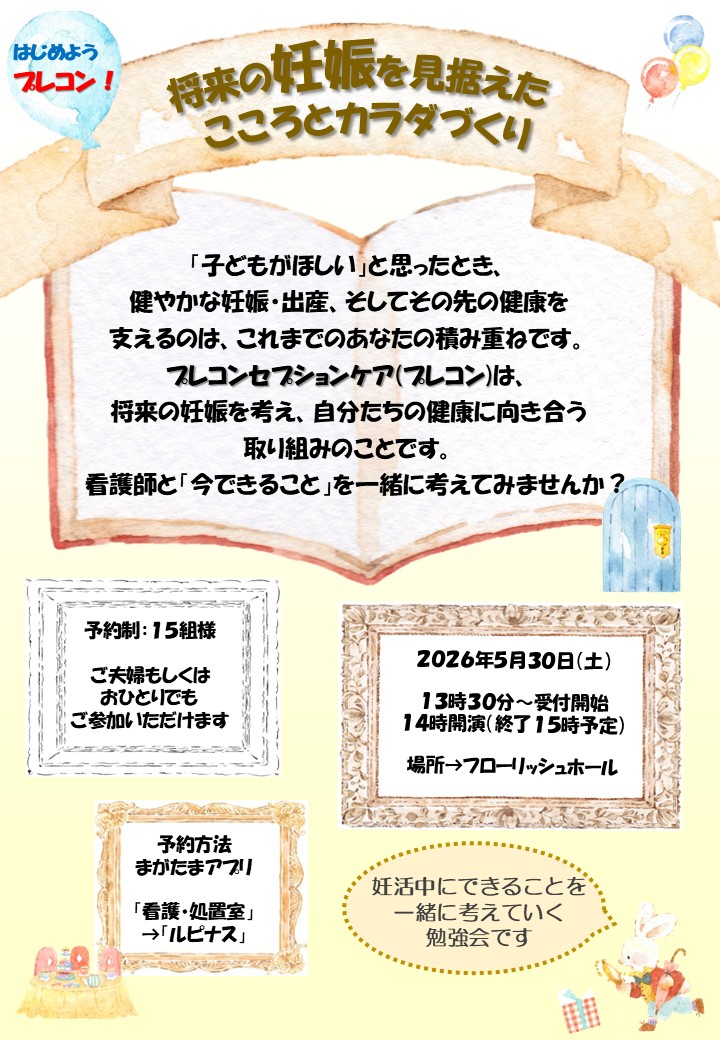 5月30日(土曜日)にプレコンセプションケア(プレコン)についての勉強会を開催致します。